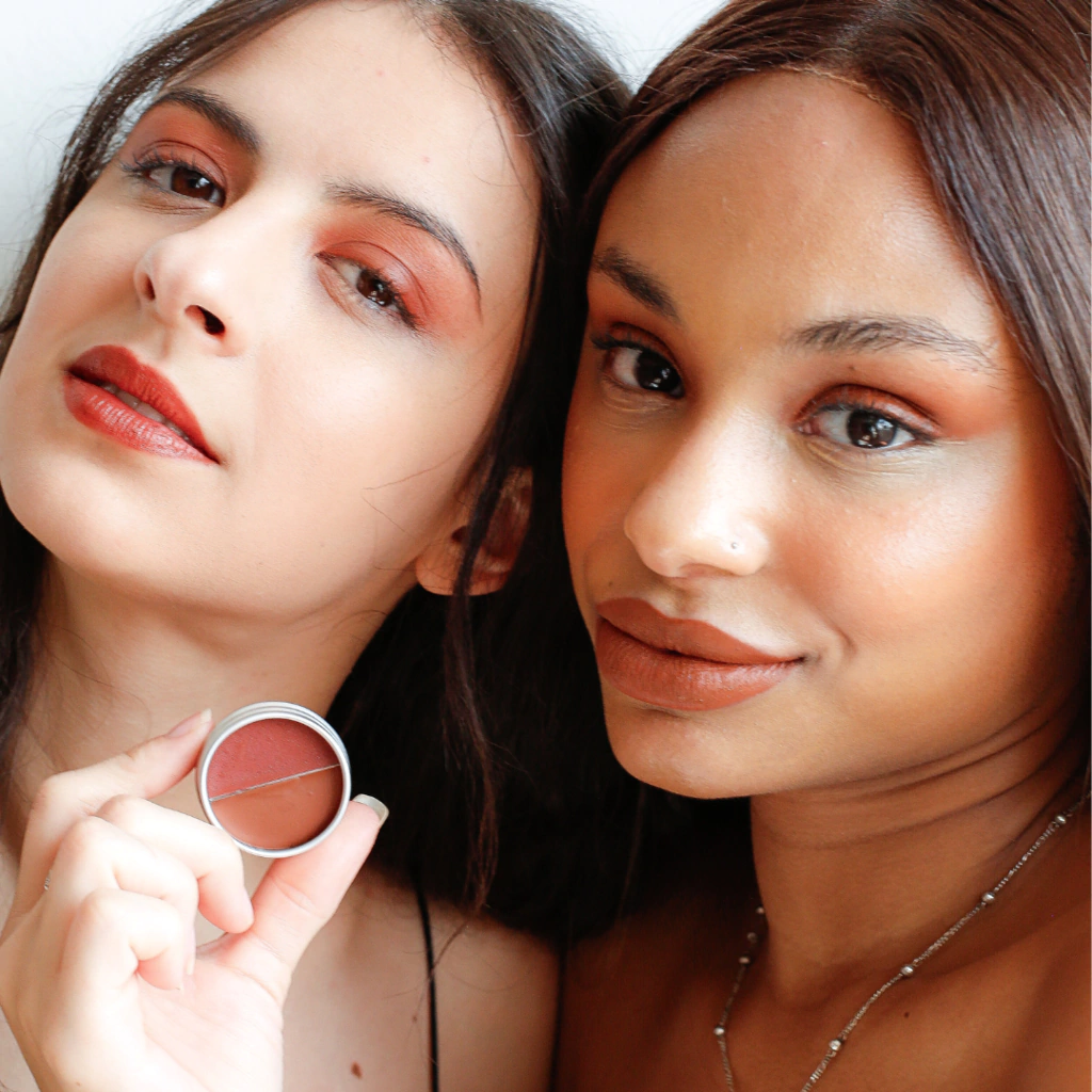 Nosso Multifuncional Cremoso Duo traz duas cores em uma embalagem prática e sustentável, com fórmula 100% natural, vegana e segura para sua pele e para o planeta.